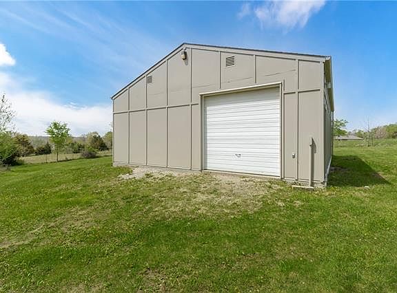 Beautiful home on 3.1 Acres with 36 X 30 Shop. Open floor plan with master on main level. New carpet, windows and paint throughout. Spacious open kitchen with island, lots of counter space and beautiful cabinets. Dining room with sliding doors and built-in blinds leading out to patio. Remodeled bathroom with bath fitter tub. Lower level with TWO non conforming bedrooms that could be an exercise room, office, and rec room. Home and Shop have new siding and paint. Shop has 200 amp electrical, lighting, propane heat, 6in concrete floor and is fully insulated including garage door. Property is fenced and split into two sections with fruit and shade trees. Great access to the city via I-49 and 291.