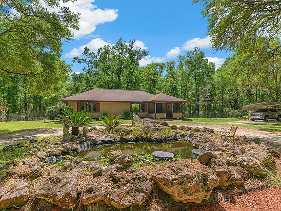 Welcome to this beautiful property in the tranquil surroundings just outside of High Springs, Florida. A stunning 18.7 acre estate with two homes and a barn, this is a rare opportunity offering the perfect multi-generational family property or an investment opportunity that could be used as a VRBO or a rental property for a terrific passive monthly income! Featuring two homes on separate parcels (9.37 & 9.33 acres), this property offers amenities of a canopy driveway with electric gate for privacy, a saltwater pool, a 2300 sq ft barn with a workshop & a finished “man cave”, a firepit area, plenty of cleared area for gardening or livestock, a small decorative pond, and beautiful under-brushed woods providing privacy and rural charm. This property is ideal for nature lovers and those seeking a peaceful lifestyle. The first residence is a 2348 sq ft block home, featuring 4 large bedrooms and 2 bathrooms and multiple living areas, providing ample space for a home office or entertaining. The interior boasts updated bathrooms with LVP, updated kitchen appliances, a 2017 roof, and a back porch leading to the screen enclosed saltwater pool. Just beyond the pool enclosure, walk over to the 2,304 sq ft barn that includes covered porches, a game room with A/C, an exceptional workshop and lots of extra storage and a carport for your boat, camper, ATVs or golf carts. This area is perfect for cookouts and large family and friend gatherings! Then, at the rear of the property sits a cozy 2