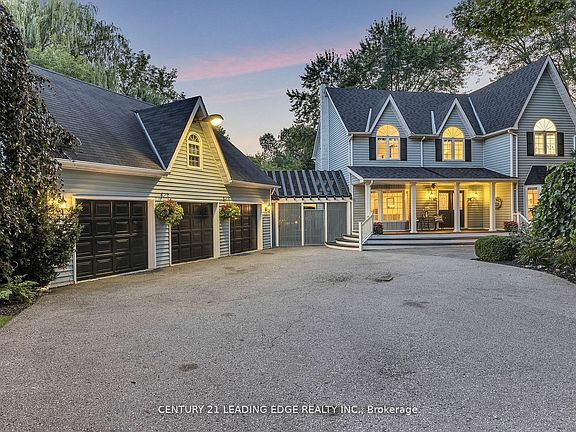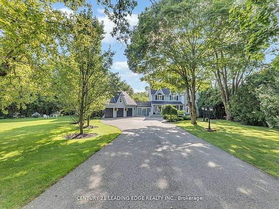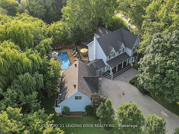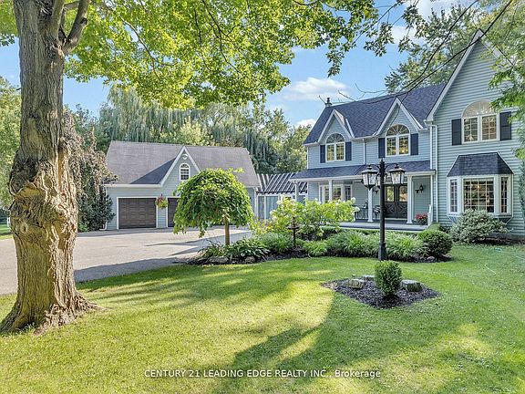This beautiful unique 2 Story 4 Bedroom 2.5 Bathroom Victorian Reproduction home is absolutely charming and has tons of curb appeal. This home is nestled amongst the trees on a very private 1.1 Acre mature treed lot that overlooks the ravine with Duffin's Creek running along the back and side of the property. You will feel completely surrounded by nature yet close to all amenities & all the conveniences of municipal water. The backyard oasis is ideal for entertaining with an enormous deck surrounding the 16' X 32' above ground pool that overlooks the ravine and creek. The insulated heated 3 car garage with a full length workshop loft has endless possibilities. This charming home with exceptionally well maintained gardens, large lot, updated bathrooms and laundry room and hardwood floors throughout with privacy galore is a rare find.