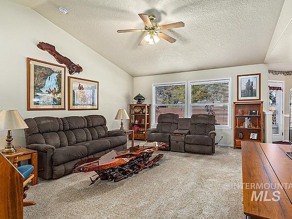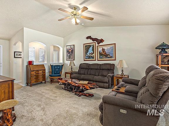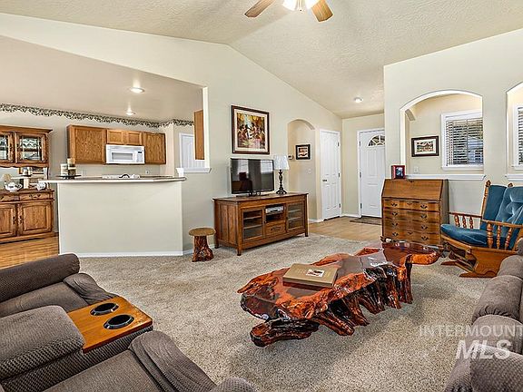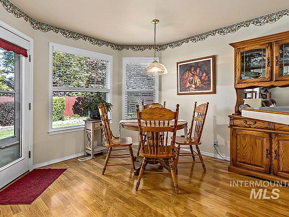 A darling single-level in a fabulous central location at a great value! Located less than a mile from The Village, this property sits just moments from shopping, dining, and entertainment with quick access to Meridian and Eagle! Having been owned by the same family for 17 years, the long-standing pride of ownership is made apparent throughout each room, presenting a move-in ready home with the opportunity to modernize the original 90's finishes to your liking. A spacious layout combines the public spaces within an open floorplan while vaulted ceilings, a warm neutral palette, and large windows create a bright and airy feel. The kitchen showcases breakfast bar seating, ample pantry space, and original wood cabinetry. A desirable split-bedroom layout offers privacy to the primary suite, featuring plenty of natural light, an en suite bathroom, and a large walk-in closet. Two additional bedrooms are tucked away on the opposite end of the home with bathroom accommodations nearby.