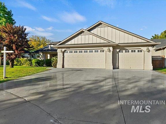 Wow! Affordable Single level 3 bedroom 2 bath with 2 family rooms 3 car garage located in one of Meridians most popular communities! Open floor plan. Gas frpl. Very clean. Vaulted ceilings & plant shelves throughout.Huge park with basketball goals right across street. Close to shopping and professional services. Engineered hardwood flooring. Tremendous savings on electricity with Solar panels!