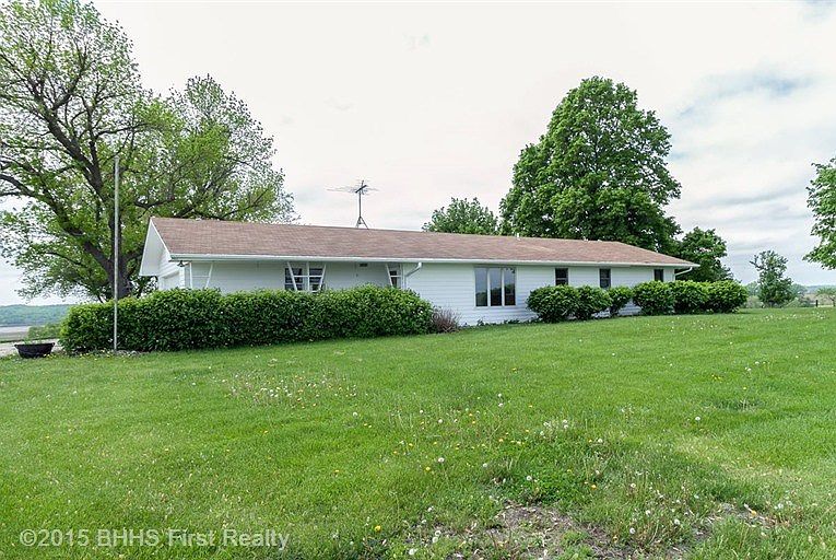 Be prepared to fall in love with this acreage with 6 acres M/L and a pond plus breathtaking panoramic hilltop view! Ranch home with over 2,000 sqft. Vaulted great room w/ gas fireplace and wet bar. Formal LR or DR. 1st floor laundry. Eat-in kitchen with center island, hardwood floors, all kitchen appliances included. Sunroom w/ 3 sides of glass is perfect for watching sunrises and sunsets! Two car attached garage plus 60x80 outbuilding & 26x40 shop building. Near I-35 with an easy 15 min commute! Improvements include new air conditioner 2011, new furnace 2008, new septic system 2014, new ext. paint 2011. Sun room added 2006.