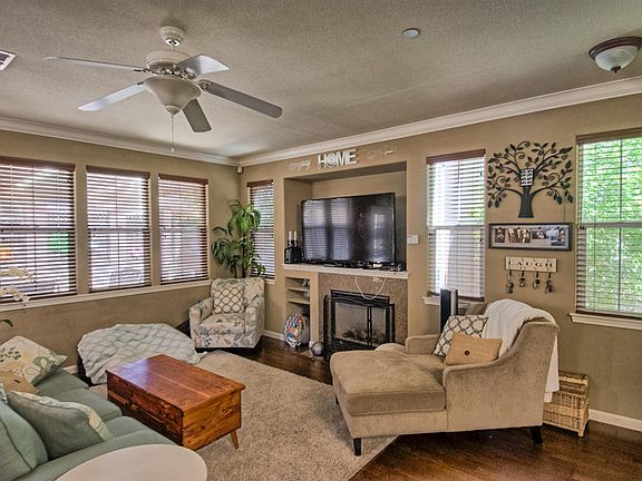 Former model home that shows beautifully with 3 bed + office area, granite throughout, stainless appliances, pantry, crown molding, upgraded faux wood blinds, designer paint colors, gorgeous laminate floors, gas fireplace, master walk in closet and tons of storage. Enjoy the stylish stamped concrete and covered back patio that offers low maintenance and a fantastic location only minutes to town.