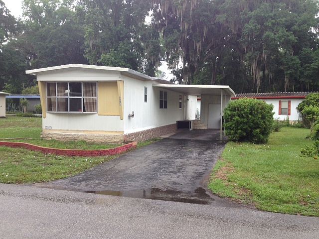 This home has a split floor plan with 2 bedrooms and 2 bathrooms and just remodeled inside and outside. The home has all new skirting around the home, new Oak kitchen cabinets, new appliances, and updated carpeting. This home sits on a nice tree lined street with extra large patio space at the home.