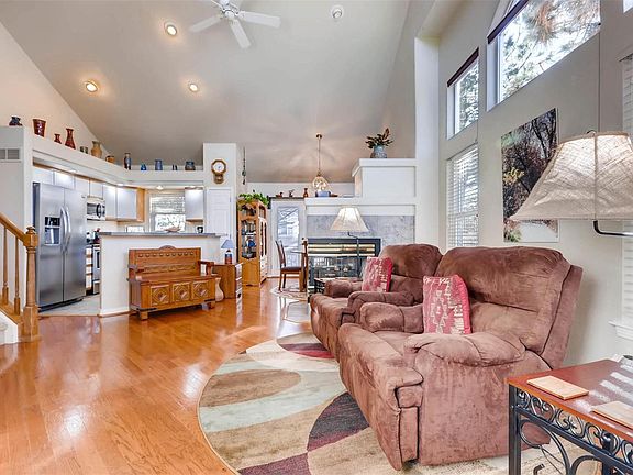 This lovely home has much to be desired, starting with it's Main Level Master en-suite. One of the best locations in the community with extra-long driveway, this home is framed with beautiful trees and nature, brought inside by large picture windows. Enjoy spacious rooms with hardwood floors in the dining and great room. Kitchen with newer SS appliances and tiled floors. Dual sided F.P. splits great & dining rooms which leads onto shaded patio through french doors. Main level master en-suite features newer carpeting, tiled floors in bath with separate shower, jetted tub and walk in closet and overlooks beautiful shaded setting. Enjoy the private second level spacious bedroom / bath and oversized loft with newer carpeting. Home was professionally painted throughout, newer water heater, some windows & 2 yr roof. Basement has been framed, insulated and wired, ready for your finishing touches. Enjoy the walk to Westerly Creek Trail and Aurora Trail network, the light rail and RTD.