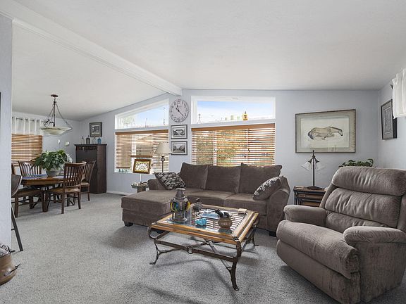 Immaculate open floor plan home in popular Willow Estates with new windows, flooring, composite covered front deck, fresh paint inside and out, countertops, remodeled bathrooms and more. Attractive drip irrigated landscaping, fenced in backyard, carport, and storage shed. Close to shopping and medical facilities. A 55+ community. Small pet okay.