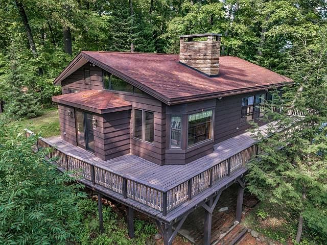 Situated on over 10 private wooded acres you will feel as if you were in Canada instead of the Northwoods of Wisconsin. This sensational 3BR/2BA home w/breathtaking views of Long Lake can be seen throughout the home. The full length of the home deck w/Southern exposure, overlooks the 428' of ftg is waiting for you to create fond memories. Upon entering this home you will notice the open concept feel w/vaulted rich wood ceiling & exposed beams. The wood floors guide you to the several large windows exhibiting the gorgeous lake views in the LR/KT & DR. The focal point of the room is the beautiful stone FP. MBR bestows the lake views as well. Another BR w/walk-in closet & newly remodeled BA finish the ML. There is a spacious partially finished LL walkout w/stone FP, large windows w/lake views, finished BR, newer BA & new Boiler. Det 2 car gar w/lean to, wonderful landscaping, lakefront storage shed & close to snowmobile trails complete the package of this well-built Northwoods home.