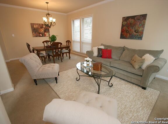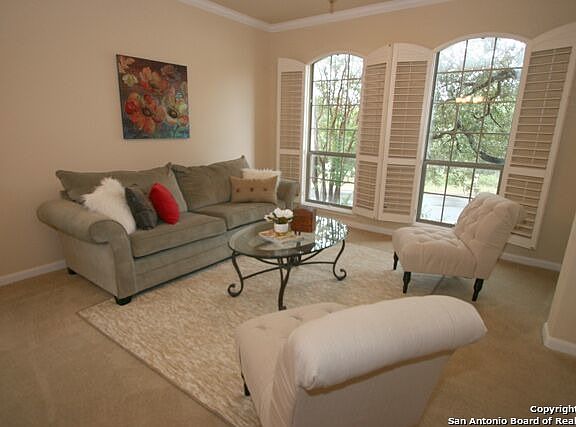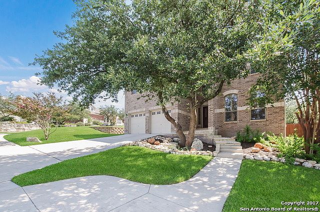 Magnificent home! Ideally situated in the Stone Oak area, this impressive home features 5 bdrms, 3 baths, 3 living areas. Secondary bdrm & full bath down. Open & spacious floor plan w high ceilings, crown molding, plantation shutters, great wood burning fireplace & an abundance of windows for natural lighting. Entertainer's kitchen opens to family room. Grand master retreat w luxury bath, garden tub, separate shower. Private, park-like backyard, well-manicured lawn, mature trees on a .34 acre lot. Must See