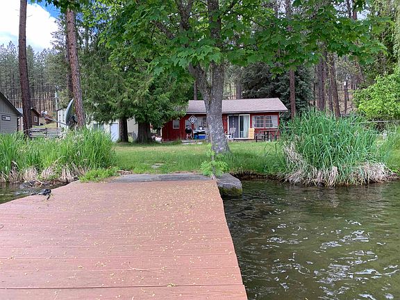 Waterfront Cabin on Long Lake! This cute little red cabin sits on a 100 feet of PRIME, FLAT, LOW BANK WATERFRONT with grass to the waters edge! Beautiful mountain views! Easy water access for swimming. Fish or swim off your dock, or jump in your boat and head out for a ride. Long Lake is 26 miles long and is well known for great fishing & water recreation. 24x24 shop to store all your toys. The fireplace and knotty pine brings out that warm cabin feel, and the roof is only 5 years old. Use the cute old outhouse for storage along w/ an additional small shed. Hiking, biking & kayaking right out your door! PUD water, Paved access and just 20 min to the North side of Spokane. Pvt boat Launch 1 minute away! Very rare opportunity!!!!