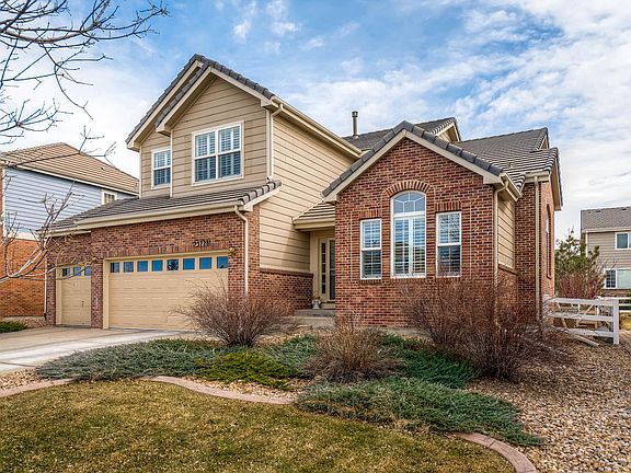 Spacious 4 bed, 3 1/2 bath, 2-story home located in Murphy Creek Golf Community on a quiet cul-de-sac! Great location across from the community pool, tennis courts, and school. Upgrades and gorgeous finishes can be found throughout the house. The kitchen boasts immense storage with Alder wood 42"cabinets, built in desk, double oven, spacious island and a built in wooden wine rack. The office is beautiful with builtin shelving and French doors. Plantation shutters can be found throughout the house and there is a gas fireplace in the family room. The master suite is enormous and has vaulted ceilings. The 5-piece master bath includes a jetted tub along with gorgeous tile detail and a spacious walk-in closet. The exterior features include a concrete patio, decorative curbing, a 3 car garage, concrete tile roof, and natural gas barbecue line. Minuets away from Southlands Mall or DIA, this property has it all! Come see for yourself!