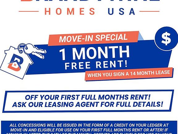 NEW YEAR LEASING SPECIAL: 1 MONTH FREE WHEN YOU SIGN A 14-MONTH LEASE!! **MOVE-IN ON OR BEFORE 1/31/25 TO CAPTURE THESE SAVINGS** *Credit will be applied to your ledger at move-in and can be used for your first full month's rent or after. If you move in after the 24th, the credit applies to your second full month's rent. Credits cannot be used for move-in funds.* This home is exclusively offered by Brandywine Homes USA on a first-come, first-approved basis until the lease is signed and the security deposit is paid. Security Deposit: Varies based on credit, with a standard deposit equal to 1 month's rent. Security Deposit Alternatives available - $150 fee (subject to approval). Additional mandatory fees: $60 application fee per applicant, $100 lease admin fee, and $25 Empower Program fee. Additional fees may apply, including $30 for smart home services, $175 for pool maintenance, and charges for pet fees, self-guided tours, and RBP Premier insurance. Brandywine Homes USA is an Equal Housing Lessor under the FHA. Lease terms apply. Photos may feature models and virtual staging. BEWARE OF LEASING FRAUD: We do not advertise on Craigslist or Facebook and will never ask you to wire funds. This property allows self guided viewing without an appointment. Contact for details.