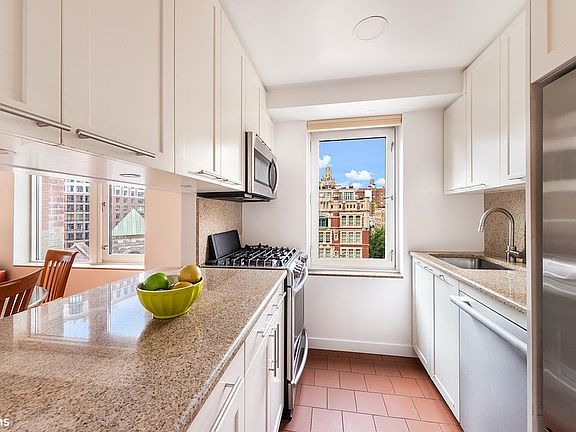 Corner, Split 2 bedroom, 2 bath home with three exposures to the South, West and North including a south facing balcony!! The renovated windowed kitchen has granite countertops, terra cotta floors, breakfast bar and amazing light. The king-sized master bedroom has great built-ins for storage and its own ensuite marble bathwith jacuzzi tub. The second bedroom is currently configured as a guest room and home office with built-in storage and desk. All of the closets are outfitted including some smartly overhung cubbies, spacious pantry and hidden shelving! The current monthly assessment of $338.65 ending 12/1/2025, will be paid by the seller.