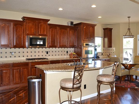 Incredible ranch style home in the community of Vista Ridge home of Colorado National Golf Course. Walking distance from the club house/driving range/community center/pool. Lovely open floor plan with gourmet kitchen including stainless steel appliances, granite counter tops, custom tile back-splash and 36" cherry wood cabinets (including pullouts). Great for entertaining! House includes beautiful black walnut hardwood floors (5" planks) stretched through most of the main floor. Enjoy a cup of coffee in the nook area with bay window looking out to the number one hole of the golf course. Beautiful large master bedroom, 5 piece master bath with Travertine Tile. Main floor also has guest bedroom with private bath and office (could convert into bedroom). Walk out lower level living (9ft ceilings) Professionally finished by builder, acts like a second living room with an extended media room. Two extra bedrooms with full bath. Great for guests and entertaining with Pool/snooker table.