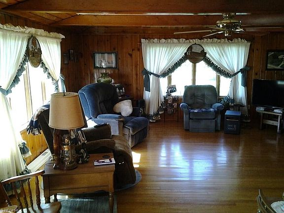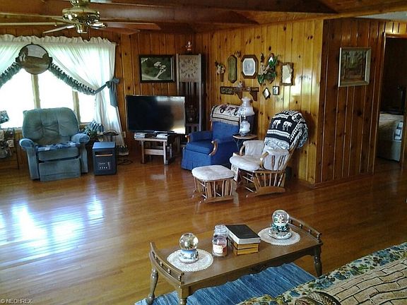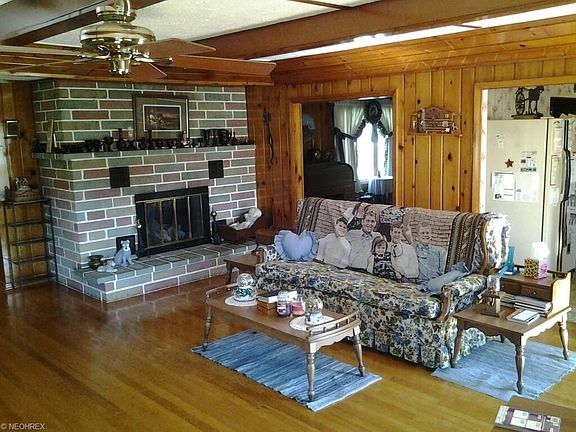 Very spacious ranch with huge living area, dining room and eat-in kitchen. This home has beautiful hardwood floors throughout. Fireplace in living room and basement, which is unfinished, but could easily be made additional living area. Waterproofed. 2 sump pumps. Central Air. All appliances stay, including washer and dryer. House roof 2009; garage and shed roof 2015. Newer water softener. Nice treed yard with cement patio. Countryside view. Very well maintained.