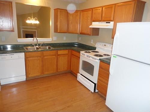 Step up & claim this beautiful Greenwood ranch home with a large covered front porch & large open backyard. This ranch style home has large rooms w/vaulted ceilings in the great room & master bedroom along w/a gas fireplace for quaint cozy evenings. Stay connected with the pass through from the kitchen to the great room for that open concept feeling. Separate laundry room by garage. Walking distance to neighborhood pool, walking trails & ponds. Carpet & paint are new throughout. Just move in!
