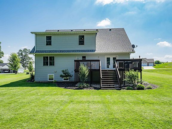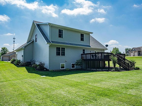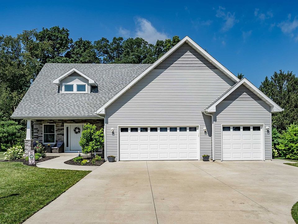 NO SHOWINGS SEPTEMBER 12, THRU SEPTEMBER 18, 2023 Welcome to quiet evenings, lake fun and private beach rights. This property was custom built for the current owners and they didn't miss a thing. Enjoy the open concept vaulted ceiling great room featuring plank flooring, custom kitchen cabinets and custom breakfast bar, flanked with double doors leading to the spacious deck overlooking the well manicured back yard. The main level bedroom is all set for the owners convenience. Walk in tile shower and double sink vanity. Large closet and lots of space. Upstairs features two spacious bedrooms and a full bath. AND if you need more space there's a daylight lower level plumbed for a 4th bath, just waiting for you to finish with your imagination.