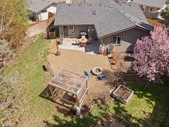 Located on quiet cul-de-sac in NE Bend, this charming single level home offers lots of opportunity to enjoy the outdoors. This 3 bedroom/2 bathrooms home is full of character from the dark wood floors to the custom lighting, and the creative personal touches, this home exudes warmth and personality. The kitchen has an artistic vibe with the green cabinets, and you'll love sipping coffee in the sweet little breakfast bar area. Step outside and discover the delightful backyard, complete with raised beds, planters, and even a chicken coop for a budding gardener. Enjoy warm summer evenings around the fire pit or host a BBQ on the patio with friends and family. Convenient RV parking is available on the side of the home, making it easy to hit the road and explore all that Central Oregon has to offer. Located just a stone's throw away from Pine Nursery Park, this home is close to medical offices, shopping, and dining options.