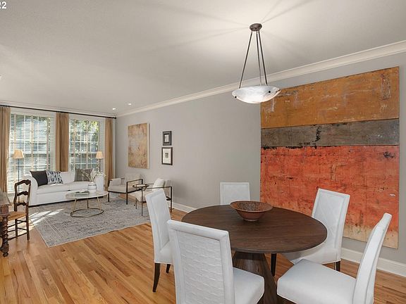 - Features: Formal, Hardwood Floors, Living Room Dining Room Combo, Skylight, High Ceilings, Wainscoting