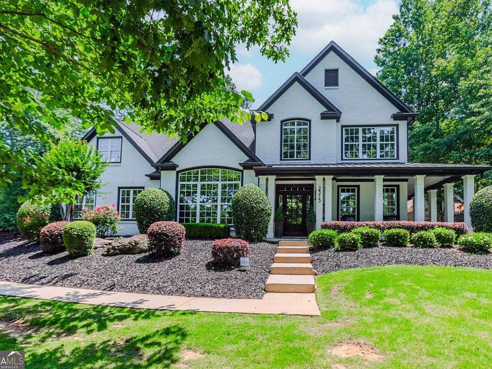 Welcome to this stunning 5 bedroom, 3 bathroom home perfectly situated in a quiet cul-de-sac in the desirable swim, tennis, and lake community of Weatherstone Lake. Boasting exceptional curb appeal and nestled on a private .59-acre lot, this home offers the perfect blend of comfort, functionality, and outdoor enjoyment. From the moment you step inside, you'll appreciate the thoughtful updates and inviting design. The main level features a bedroom and full bathroom, ideal for guests or multi-generational living, as well as a dedicated office for working from home, highlighted by direct access to the Southern Living-style wraparound front porch. The updated kitchen offers modern finishes with ample space for cooking and entertaining, along with a walk-in pantry large enough to also house all of your small appliances. Upstairs, you'll find the expansive primary suite with a lounging area and 2 walk-in closets, as well as generously sized secondary bedrooms with an abundance of storage and living spaces. Step outside and enjoy the privacy of the fenced backyard with plenty of space for entertaining, play or gardening. The beautiful landscaping on the entire lot will be easily taken care of by the in-ground sprinkler system, equipped with a rain gauge for maximum water efficiency. Located in the highly regarded Mill Creek School district, this home combines the best of community amenities, privacy, and convenience. Don't miss the opportunity to call this home yours!