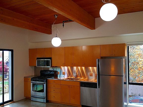 Amazing loft in the heart of SE Portland. 10 foot ceilings with exposed beams, huge windows, private 80 sq. ft. deck with views of Mt Tabor, polished concrete floors with radiant heating, stainless steel countertops and appliances, gas range. Designed by award-winning HOLST Architecture. Live ultra-efficiently. Walk or bike to anything! HOA covers all utilities except electric and internet. Secure entry way and on-site storage unit.