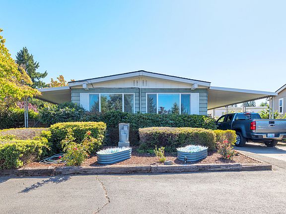 Wonderful View of lake and mountains from living room windows in the mobile home in Roguelea Estates Senior Park. 1440 sqft, 2 bdrm, 2 bath home built in 1971. Spacious living room, Formal Dining, kitchen and family room. Master bedroom with private bath. 2nd bedroom and hall bathroom. laundry room. Oversized deck, 2 carports with room to park 4 vehicles. 2 storage sheds. Space rent $985. Park requires buyers to have 3X monthly rent to qualify for park.