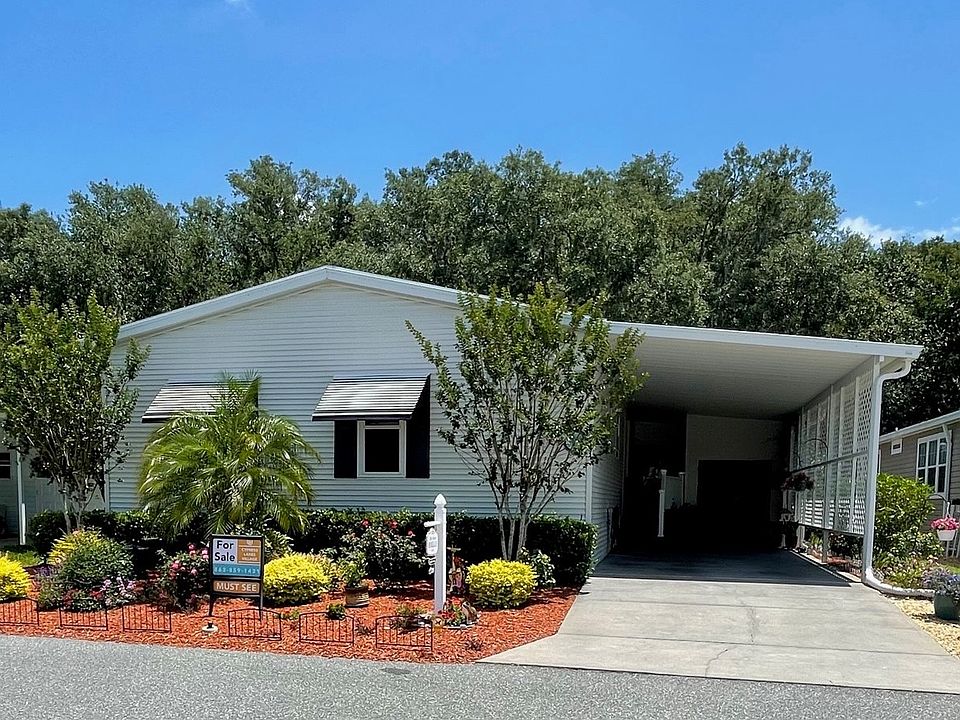 This home is located within a 55+ resort style leased land community; age restrictions apply. This beautiful home in our final Phase, Phase 12, is calling your name! The home offers a beautiful, wooded view that can be enjoyed from the extra-large screened in lanai or outside extended patio area. This 2-bedroom, 2 bathroom home with a den as well as a separate laundry room will not disappoint! So many updates have been done to this home. Did I mention the beautiful landscape as you drive up and then the Trex front porch with lighted steps leading to entry into the home as well as lanai? Truly a must-see home that will not disappoint. Listing details are provided by homeowner and are not guaranteed.