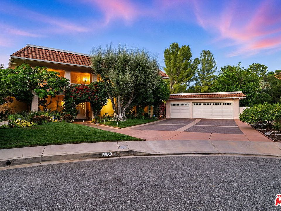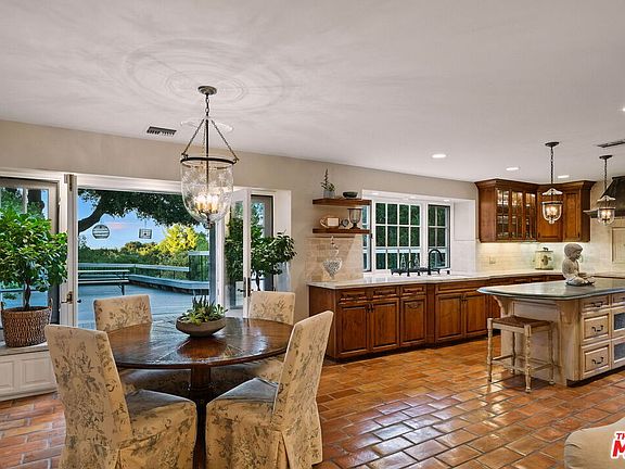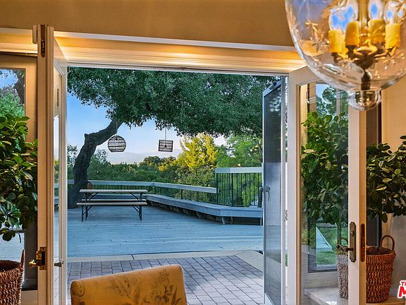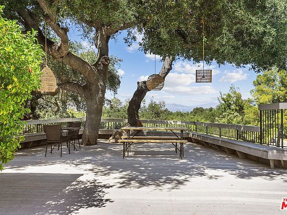 Stunning Hacienda-style residence showcases sophisticated, yet authentic design elements with exceptional views and an impressive yard. Situated on a cul-de-sac, this two-story home features 4 bedrooms, 3.5 bathrooms with timeless character and modern comforts. Meticulously appointed with curated furnishings for a comfortable atmosphere, the well-planned layout flows effortlessly between living spaces, creating perfect harmony between indoor comfort and the spectacular outdoor retreat. Natural light floods the casual living room and elegant dining room, while the chef's kitchen captivates with designer finishes including Taj Mahal quartzite countertops, a soapstone island, and Saltillo tile flooring. The built-in coffee bar adds the perfect touch for morning rituals. A serene seating area off the kitchen with built-in storage and media center can be used as an additional family room. Upstairs, the primary suite offers a serene retreat with a fireplace and private access to an expansive balcony. The spa-like bathroom includes a soaking tub with views, thoughtful storage and a generous walk-in closet. Adjacent to the primary suite is a flexible bonus room currently used as a gym (equipment optional) that can easily serve as an office or recreation room, with access to a rooftop deck. Three additional bedrooms on the main level provide comfortable accommodations and an abundance of storage. Two secondary bedrooms share a bathroom, while the third bedroom is an ensuite. The expansive backyard is perfect for both relaxing and entertaining, featuring a sparkling pool, beautiful landscaping and mature citrus trees throughout. The viewing deck offers incredible views from the valley to the mountains, creating an atmosphere reminiscent of the Ojai Valley Inn sunsets and refined resort-style living. Multiple outdoor spaces create ideal settings for any occasion. Additional features include a security system, Ring doorbell, EV charging capability, and abundant parking with both garage and expansive driveway space. As part of Calabasas Park, residents enjoy HOA privileges including access to the community lake for walking and recreation, plus proximity to upscale shopping at The Commons, award-winning schools in the Las Virgenes Unified School District and top private schools, and great dining options. Flexible term lease. Available fully furnished for immediate occupancy, but will be considered unfurnished if preferred.