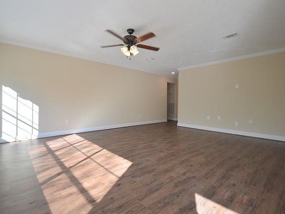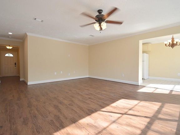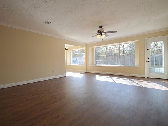 1-story home with tons of southern charm and no back neighbors. The curb appeal with mature trees and manicured landscaping welcomes you. The open concept living room can combine as a dining room or an oversized living area. Natural light flows through the family room and breakfast area, located adjacent to kitchen. The back wall features windows with bench seating. Granite counter tops and ample cabinet storage are highlighted in the kitchen. Hardwood floors flow through the large master bedroom with crown molding. Master bath features jacuzzi tub as well as separate shower. Spacious secondary bedrooms. Backyard is fully fenced and features large deck to entertain. This home has lots of privacy and backs up to a reserve area. You don't want to miss out on a chance to make this your forever home!