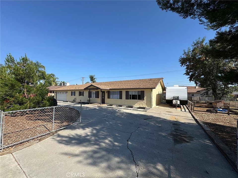 This spacious 2,000 sq ft single-story ranch home offers 5 generously sized rooms and 2 full baths, a great room large enough for any sized family function, this home provides ample space for family living and entertaining. Notable features include: RV Parking with Full Hook-Ups: Ideal for those with an RV or recreational vehicle, this property is equipped with a dedicated 30 amp panel and receptacle for easy access to full hookups. Paid Off Solar System: Enjoy energy independence with a solar system that’s owned free and clear, providing long-term savings on your utility bills. Whole House Water Softener: A Rain Soft water softener has been installed to ensure you have soft, clean water throughout the home. Modern Water Heaters: Two 20-gallon water heaters, both only a year old, ensure ample hot water for daily needs. Ceiling Fans in Every Room: Stay cool and comfortable with ceiling fans in every room, including the living areas and bedrooms. Recent Bathroom Remodel: The home boasts a partially remodeled bathroom with updated finishes, providing a modern and fresh space. Fresh Interior Paint: New interior paint throughout enhances the bright, welcoming atmosphere of this home. Brand-New Interior Doors and Frames: All new doors and frames have been installed, adding to the home’s fresh, updated look. No Hoa & super low taxes make this property a fantastic purchase. Property does have a swimming pool & jacuzzi that needs to be re plastered it is currently empty.