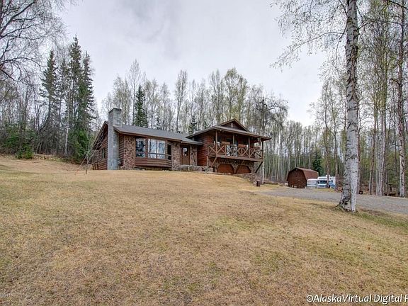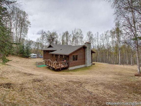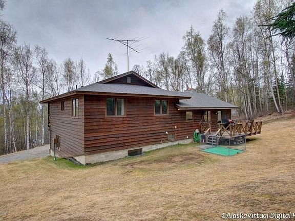 This beautiful 3 bedroom 3 Bath horse property has never before been on the market. Custom built 'by the builder, for the builder' is evident as you tour this delightful home. As you preview the photos notice the huge master suite, custom built rock fireplace and open living room that feels like you're living in a glass house! Downstairs is another living room, another fireplace (more) Downstairs is another living room, another fireplace and a special princess suite. The Garage fits 2 vehicles and still room for AK toys. For the horses!! A hard to find horse barn with loft and quality fencing. Note: There is an extra room for a den or office.