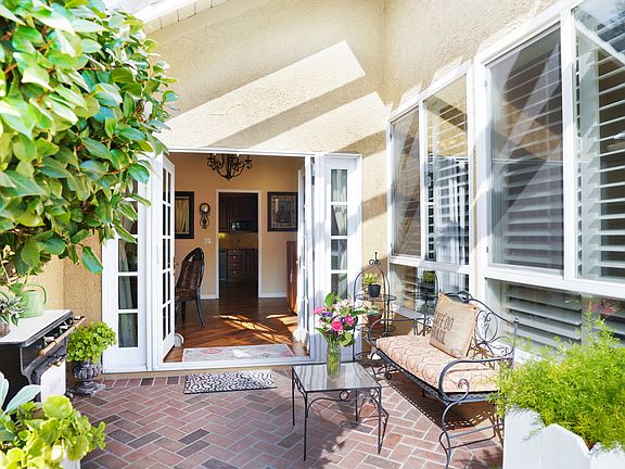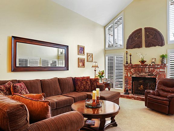 Gorgeous Valencia Hills Single Story Home! Here's your chance to own this lovely home that displays the ultimate pride in ownership. You'll enjoy this wonderful three bedroom, two bathroom open floor plan home with an abundance of natural light & ready to move in. Walk up the serene porch with peaceful fountain leading to the beautiful double door entry that opens up to beautiful vaulted ceilings with gorgeous windows surrounding the cozy brick fire place This delightful home includes several upgrades such as; dual pane windows, newer exterior paint, interior paint, garage door with upgraded automatic opener, appealing vinyl wood flooring, newer carpet, recessed lighting, plantation shutters, whole house fan, newer A/C with efficient two stage system, & spectacular hallway pull down ladder for additional attic storage. The show stopper kitchen includes granite counter tops, custom cabinetry with built in trash & recycle bins, 2 lazy Susans, built in wine storage, pull out drawers, pantry, custom glass doors, Viking cooktop, double oven, & Bosch dishwasher. Don't miss the splendid backyard, with 2 great side yards that can be used for doggie run, tool shed, & wonderful lower yard. Truly one of the nicest communities Valencia has to offer. Take delight and enjoy the beautifully landscaped paseo walkways, private community club house, pool, kiddie pool, tennis courts, playground, & firepit area. Come see this beautiful home!