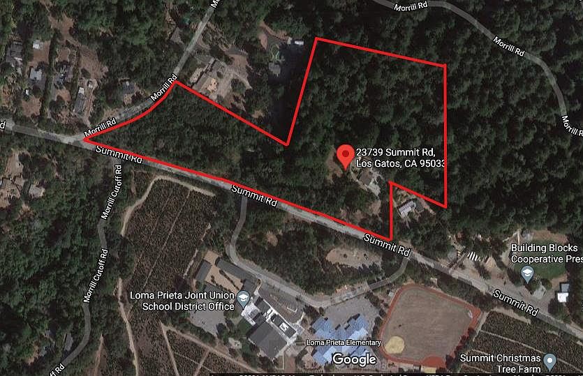 Rare Opportunity! 16+acres in the heart of the Summit area, close to all local amenities including schools, store, churches, and wineries. Almost 1500 feet Summit Road frontage extending from Morrill Rd, almost to the Loma Prieta school campus exit. Access from Morrill Rd and Summit. Gently rolling, mostly usable land, once pear orchards along the sunny, south-facing Summit side, featuring majestic redwood groves on the northern slope abutting SJWC land. Unlimited potential to develop a mountain estate w/ room for horses, pool, sports courts or raise livestock, orchards, organic farming, vineyards. The existing home dates back to 1942 - has been updated. Private setting on the knoll, set back from Summit with gated entry and long sweeping private driveway. This is a one-of-a-kind property! Parcels of this magnitude rarely come on the market in the central Summit area. Excellent schools, Loma Prieta Elementary, CT English Middle, Los Gatos High!