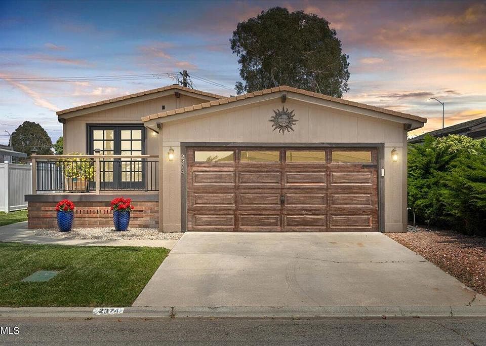 Located in one of the nicest parks around, this lovely 2-bedroom, 2-bathroom mobile home was completely redone in 2020. Step inside to discover an open floor plan that seamlessly connects the kitchen, dining and living space, creating an inviting modern atmosphere perfect for both entertaining and everyday living. A high beamed ceiling. adds elegance and spaciousness, with designer touches that make everything special. The primary bedroom offers a serene retreat with an ensuite bath including a free gorgeous free-standing tub, and walk in shower, double sinks and another electric wall fireplace. The second bedroom opens up to a charming patio through elegant French doors, both rooms have ceiling fans. This lovely home includes a 2-car garage with space for a washer/dryer (included) as well as a fenced yard. Located in a friendly and well-maintained park, you will enjoy the water features, clubhouse and convenience this community has to offer. Just minutes away from the Collection with shopping, dining and entertainment, everything you need is within easy reach.Do not miss the opportunity to make this beautifully renovated mobile home your own. Schedule a viewing today and experience the perfect blend of comfort, style, and convenience!