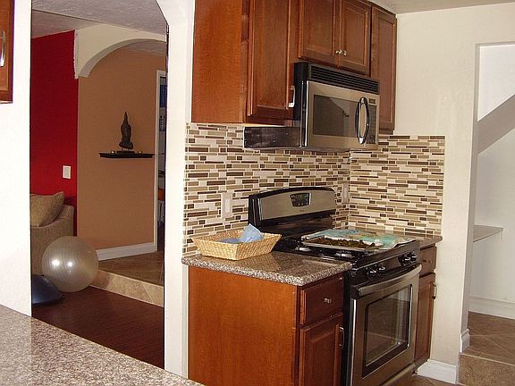 Newly fully renovated townhome, new kitchen with granite countertops, gorgeous back splash, new cognac kitchen cabinets, new bathrooms with granite counter tops, new 20X20 porcelain tiles in shower and floors, new bathroom vanities, second master bedroom with slate floors and slate shower wall, new custom paint throughout. Beautiful dark laminate wood floors throughout, 20X20 porcelain floors in entrance, half bathroom, laundry room, kitchen and pantry, new pipes in both bathrooms upstairs. New thick sliding glass shower doors in both bathroom upstairs. New interior doors throughout. Walk in pantry in kitchen. Neighborhood Description Safe, quiet, with some great running and biking trails nearby, close to everything, such as post office, supermarket, shopping mall, library, I-5, beach, movie theatre, parks, playgrounds, green areas, etc. New roof installed on June 2019. New stainless steel side by side Whirlpool refrigerator and new Samsung stainless steel dishwasher, both purchased in October 2019. New double pane energy efficient white vinyl windows and sliding doors throughout, installed on January 2020. New white Google Nest Smart Thermostat, installed in December 2019. New stainless steel Frigidaire 5 burners gas range purchased in May 2020.
