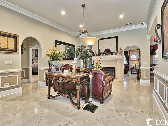Look no further for luxury living at it's finest! 2374 Clandon Drive is a well maintained home loaded with upgrades, and situated on a beautiful pond in the backyard. This distinguished home features high-end finishes throughout, including extensive trim and moldings. There are 4 bedrooms, 2 full baths and 1 half bath, along with a formal dining room, formal living room with a cast stone propane fireplace and a family room. The master bedroom ensuite features a jacuzzi tub, custom master closet built-ins and a private screened-in porch. Enjoy the second screened-in porch and patio off of the family room, with a luxurious outdoor kitchen, including granite, stacked stone, high-end appliances and a sound system. This all-brick home also features granite counter-tops in the kitchen, custom cabinetry, new stainless steel appliances, Italian marble flooring, an extensive security system, an over-sized garage with additional parking space and a professionally landscaped yard with exquisite lighting and lots of beautiful palm trees. NEW HVAC Fall 2021. All NEW interior paint! Don't miss out on this beautiful home in Carolina Forest, with award-winning schools, convenient access to medical facilities, restaurants, shopping and is only 15 minutes from the beach and all that Grand Strand has to offer.