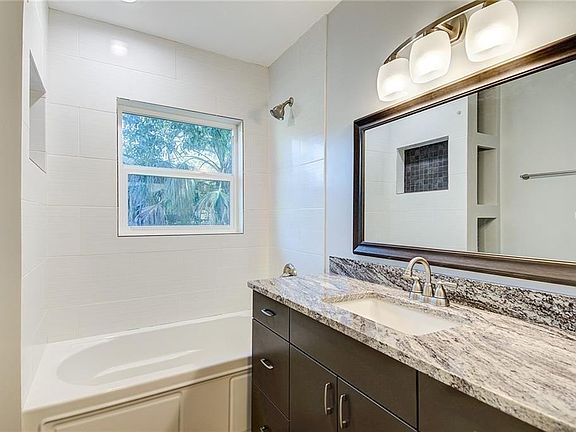 Location, location, location! This is practically a brand new home without the price tag! This spacious, remodeled 3 bedroom, 2 bathroom, 1 and a half car garage, POOL HOME is located east of trail and close to everything! It is walking distance to the Sarasota Memorial Hospital & Sarasota high school along with minutes from downtown Sarasota! This home has been extensively remodeled from top to bottom, outside to inside. Lets start with the renovated, spotless, dream kitchen that comes with elegant granite counter tops, soft close custom cabinets, custom glass back splash and don't forget about the perfectly placed island that includes the cooktop and vent hood. The interior offers diagonal custom tile throughout, all new interior & exterior doors, hurricane impact windows & has been freshly painted. It also offers an open floor plan with split bedrooms. Both bathrooms are contemporary with custom tile, vanities with granite & modern fixtures. Enjoy your own private laundry room as it is not located in the garage. The covered front porch would be a peaceful spot to enjoy your morning cup of coffee and then later invite the entire family over to enjoy the in ground pool inside the new expansive lanai. Offering flexible leasing options 3 - 12 months
