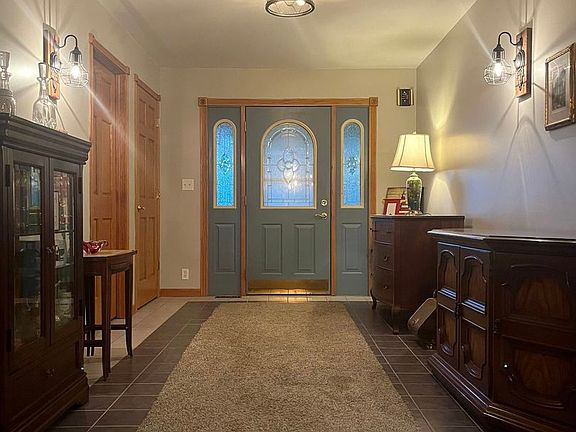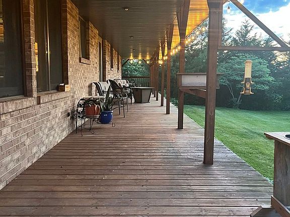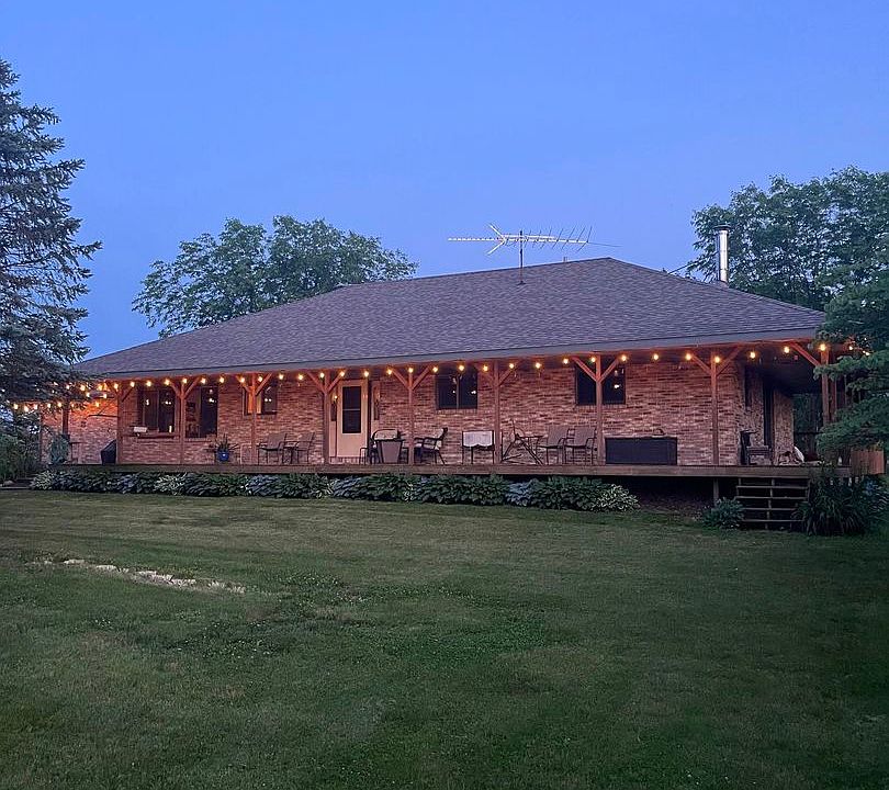 Multiple offers, highest and best called for by 6/16, 7 pm. Built in 2000, this custom all-brick ranch home with a full, walk-out basement is situated on 8.83 acres and features 4/5 bedrooms, 3 full baths, and amazing views from every room. Walking into the home from the wrap-around porch, you are greeted with welcoming foyer that opens to the huge living room and kitchen with granite countertops, stainless steel appliances and plenty of cabinet space. The main bedroom has its own outside door that leads to the wrap-around porch, an ensuite and tranquil views. The walk-out basement features 2/3 bedrooms with three exits to the exterior, including one to the spacious greenhouse. The basement also features a family room, recreation/game room space, tons of storage and a full bath. The basement has heated floors as well. The property itself has an out barn with one side cold and one side insulated and heated (wood burning stove), Internet tower that provides free WIFI to the owner, fenced vegetable garden space, a pavilion, firepit area, a functional outhouse, chicken coop, hayfields (possible revenue generation), fruit trees and so much more. The home also has a tornado shelter with electricity and extra wide doorways throughout the home for wheelchair accessibility. There is so much to list and so much to love and enjoy IN the home and ON the property.