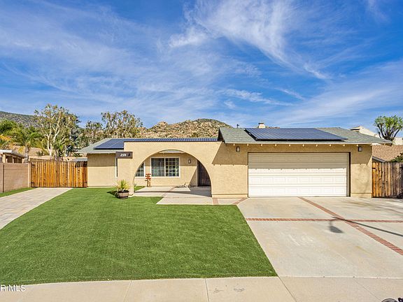 Welcome home to this efficient and upgraded single story in East Simi Valley. This beautifully maintained home offers an open concept floor plan with an abundance of upgrades. Offering 4 bedrooms and 2 full baths, this home boasts an abundance of natural light along with spacious living areas and bedrooms. The kitchen opens nicely to the family room boasting large windows with motorized window shades and views of the rear yard. The living room boasts vaulted ceilings and a cozy fireplace. The primary suite has its own en suite bath with remodeled shower and convenient sliding door to the rear yard. Your private rear yard is a wonderful retreat for relaxing and entertaining. The spacious spacious covered patio is complete with lighting and ceiling fan, just steps away from your own private hot tub. The large pie shaped lot is finished with a large grass turf area and generous side yard that will easily accommodate a variety of storage needs. Additional amenities and upgrades include: paid in full solar panels (owned, not leased), dual paned windows, tankless water heater, updated electrical (including Electric Vehicle charging outlet & 50 amp RV or generator outlet), newer attic insulation and duct work. All located in a quiet and friendly neighborhood close to parks, schools, shopping, and easy access to the 118 freeway.