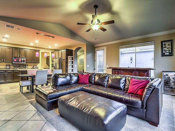Huge price improvement on this beautiful and well sought-after single-story home in Coventry at Anthem with over 2,200 sq. ft of formal and family living that has been freshly painted throughout. Upon entering the home there is a large formal living area with direct access to a formal dining room. Upgraded kitchen with granite countertops, stainless steel appliances, a double oven, a separate cooktop, an island overlooking the large breakfast area and a huge family room with fireplace. Four bedrooms, three full baths, large backyard and a two car garage. Friendly community and just steps away from Harmony park, a gorgeous grassy oasis with paved walkways that ends with a spectacular view of the strip. Enjoy the HOA and non HOA events that bring the community together for both children and adults. Convenient access to shops, restaurants and the new Raider's Performance Center.