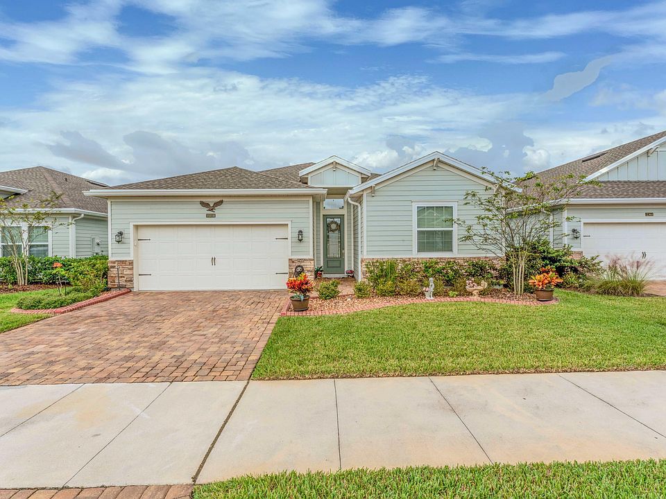 Beautiful home on the water in Red Hawk. Built in 2018, Trevi Model. A 4/3 home with all tile plank flooring through out. living/dining combined with an open kitchen. 3 guest bedrooms, one with an ensuite bath and custom built closet. Master with separate shower and tub with two custom closets. Nice open space that leads to a great extended screened lanai overlooking the lake. Newer home that offers lots of upgrades. Enclosed garbage bins on side of home. Front yard curbing, Fans in all bedrooms ,UV Light in AC, Instant Hot Water Button, A/C Easy Start System. Red Hawk offers a Resort Style Pool and a playground located at the front of the community. Schedule your appointment today. Welcome Home!