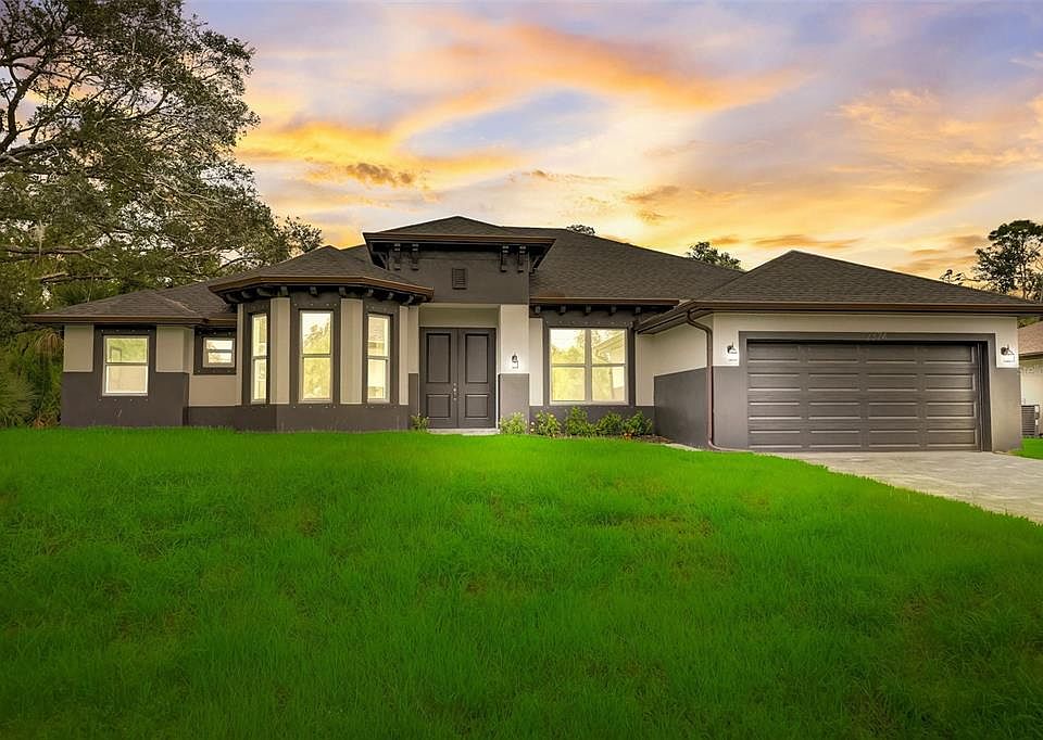 Welcome to your dream home! This brand-new construction is ready for you to move in right away. Boasting 3 spacious bedrooms plus a versatile office, 2 luxurious bathrooms, and over 2,200 square feet of exquisite living space, this executive home is a masterpiece of modern design. As you approach, you'll be greeted by an upgraded pavered driveway that sets the tone for what awaits inside. Step through the double front doors into an open-concept space that radiates grandeur, from the coffered ceiling in the great room to the elegant marble tile flooring that spans throughout. The kitchen is a culinary paradise, featuring a large kitchen island with ample barstool seating, top-of-the-line stainless steel appliances, and a generously-sized walk-in pantry. The owner's suite is a sanctuary of luxury, with a double tray ceiling and a spa-like ensuite bathroom adorned with designer tilework, separate vanities, a soaker tub, a separate shower, and a roomy walk-in closet. The additional bedrooms are generously proportioned, while the office can effortlessly serve as a 4th bedroom. Crown molding and tray ceilings are found throughout the home, adding an extra touch of sophistication. The inside laundry room is equipped with a convenient laundry sink. When you step outside into the private backyard, the lanai beckons with two cooling fans and a spacious covered area, perfect for entertaining friends and family. Here, you'll relish the tranquility of no rear neighbors and the opportunity to immerse yourself in the natural beauty that surrounds you. Situated in a desirable location within the thriving city of North Port, you'll have quick access to World Famous Mineral Springs, North Port's Aquatic Center, schools, shopping, dining, and a short drive to beautiful sandy beaches. Don't miss the chance to make this executive home yours; schedule your private showing today, and start living the life you've always dreamed of!