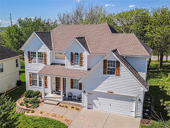 This lovely 2-story home has 4 bedrooms, 2 full baths, and 2 half baths. The property is situated on a family friendly cul-de-sac with a big back yard and mature trees for privacy. The main level is open with lots of natural light, and the kitchen walks out to a big deck. Upstairs a big primary suite has his & hers closets and a luxurious bath with a beautiful updated shower. Three additional bedrooms are upstairs, along with a second full bath. The laundry is also on the bedroom level! On the lower level you'll find even more space with a finished basement that includes a large rec room and another half bath. What a wonderful neighborhood to call home! Located in western Olathe, Persimmon Hill is close to Lake Olathe and Prairie Center Park with shopping, dining amenities and access to K-7 Hwy, K-10 Hwy, and I-35 just a short drive away. Amenities include a large community lake with fishing for residents, 35 acres of manicured greenspace with walking trails, and forested landscapes, 3 pools (within easy walking distance!), a tennis court, and two playgrounds. Three schools are located within the neighborhood (elementary, middle, and high school).