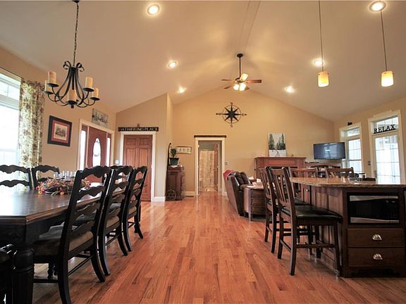 4-5 bedroom home in the country, but just "2 songs" from Ft. Drum. Amazing custom built home with full, finished basement. Hardwood floors throughout the 1st floor, tile in the laundry/mud room. Fabulous great room, kitchen with an abundance of cabinets, huge island, granite everywhere, and SS appliances including a wine fridge. 2 bedrooms and bath on 1 end of home, and master suite on the other. Master bath has a huge tiled walk in shower and double sinks. 3 season porch off great room. Basement has family room, 1/2 bath and workshop. 2-car garage with finished space above. Owner has an art studio but this could be an additional 2 bedrooms. Central air, propane furnace and water heater. Seller says annual propane bill is about $1100 and National Grid is about $100/month. Carthage schools.