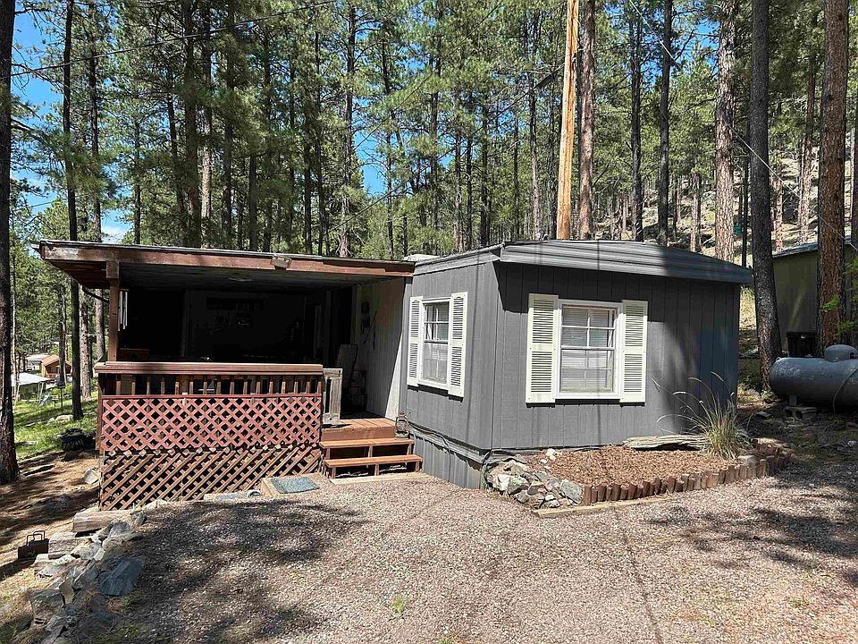 Listed by TJ Wojtanowicz at Black Hills Realty 605-863-1920. Don't miss your opportunity to own your cabin at the lake! This well cared for manufactured home is located in the Blue Wing Recreational area at Sheridan Lake and is ready for new owners. Listing does not include any Real Estate it is a leased lot. Features include 2 bedrooms, 1 bath, new flooring, paint, all appliances and plenty of outdoor living! Outside you have a large covered deck with a storage area, open deck, parking, stand alone shed, and trailer parking!