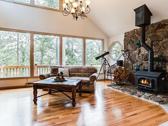 Privacy with Access! Every inch of this home has been maintained and updated and no corners were cut. It has a mainfloor master suite and lots of living on the main level that opens to the 1349 sq foot new redwood deck that is a must see! Every detail was thought out including the steps to the horseshoe pit, the hiking / ATV trail on the property and access to the lovely grass sitting area. Updates in this home are all high end and include new wood floors throughout, 6 panel doors, new roof, an amazing kitchen with Canak cabinets, a Zuhne steal sink, granite counters, new appliances and both bathrooms are remodeled. The upstairs includes 2 nice size bedrooms, a full bath and an open loft for an office. The property is great for hiking and has an area you can build another shop or outbuilding. The home stays super warm w/ the wood stove and is well insulated. You will not find a home and lot this well thought out and maintained w/ this much privacy so close to town.