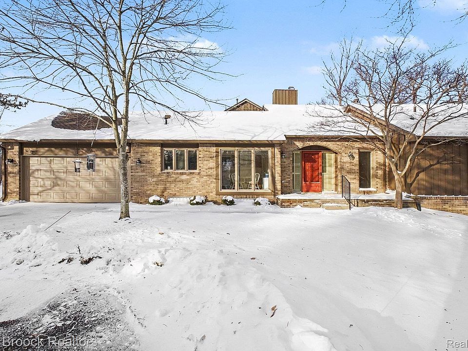 Situated in popular Bingham Woods, this ranch-style condominium blends a private, wooded setting with a highly functional layout. The main floor offers two bedrooms and a den, a first-floor laundry room, a large eat-in kitchen, and a separate formal dining room. A spacious great room anchors the home with double doorwalls—one opening to a deck and the other to an enclosed patio—creating effortless indoor-outdoor flow. The large primary suite features a cathedral ceiling, a doorwall to another deck, two walk-in closets, and a generous bath with double sinks and a dedicated makeup vanity.