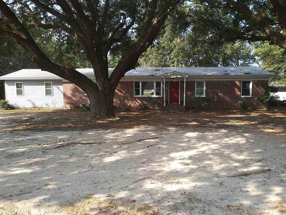 Large ranch style home located in Robertsdale!. Very spacious master bathroom with a walk in closet and attached master bath! Split floor plan for privacy. Lot has beautiful mature oak trees! Is a must see for anyone interested in opening their own garage! Metal roof installed in 2017. Home has a active transmission garage on the property approximately 30x40.