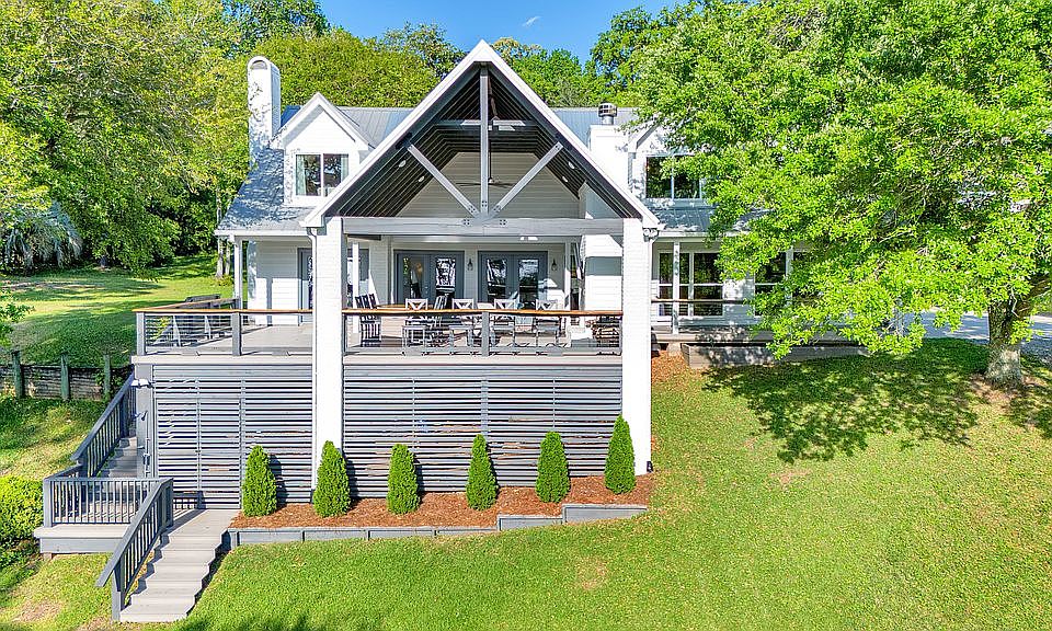 This exquisite bayfront residence features 1.22 acres along the shores of Mobile Bay, featuring a 2,857 sq. ft. 4-bedroom, 2.5 bathroom that blends timeless coastal elegance with modern luxury. Step into paradise with this stunning private waterfront home offering breathtaking panoramic views of the bay with a private beach. Enjoy 85' of waterfront views from the living room, kitchen, upstairs & downstairs bedrooms. Enjoy incredible sunset from the 400 sq. ft. new deck featuring a woodburning fireplace with gas starter, dining table/bar and overlook bar. Tucked away in a tranquil setting off Main Street in Montrose, this home is close to everything but also feels like a private getaway. This open plan features a beautiful living room floor to ceiling windows/French doors that lets the natural light shine through with a gas fireplace that overlooks the kitchen and eating area. This home offers a ton of flex space to use as a den, office, guest bedroom or kids play area. Large pantry features hand carved Antique French doors from the mid 1800's. Renovations home include 4000 psi commercial grade retaining wall, 6,000-pound capacity boat lift, (2) new A/C systems, new paint throughout interior & exterior, new floors, tankless hot water system, (2) outdoor showers and vegetable garden. Other features include 2-car garage, storage building, ample attic storage space, linen closets and upstairs laundry room. Beautiful professionally cared for 100-year-old+ Oak Tree in rear of home. Whether you're looking for a permanent home or a weekend getaway, this property offers it all with endless activities including fishing, walking the beach, crabbing, boating, zip line, kayaking, paddle boarding, sailing just to name a few. Two parcels included (TAX PPIN 203141 and 80523). Property is not in a flood zone. Buyer to verify all information during due diligence.