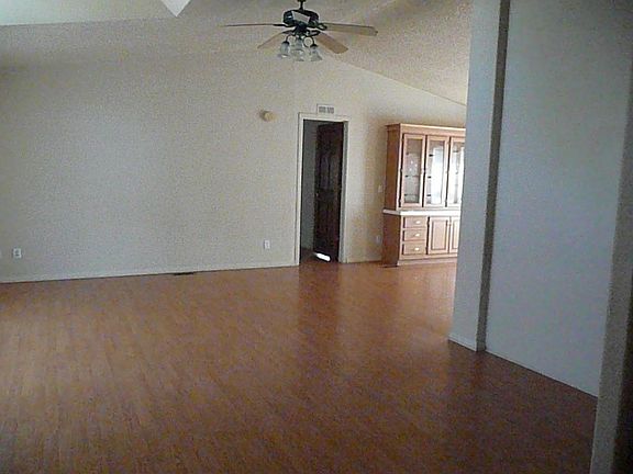 Located off the main road in the cul-de-sac. This is a very nice double wide manufactured home with laminate flooring throughout. Very roomy and open floor plan, has a sunny kitchen with breakfast bar, 3 roomy bedrooms and central air conditioning. There is a large backyard ready for your green thumb. Has been converted to real property.