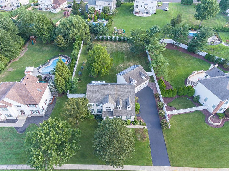 The Apple Ridge - Bayberry Model at it's finest boasting an addition, a THREE car garage, plus the walk-up 630SF bonus room just waiting to be finished for recreation, the parents or the au pair. Apple Ridge access to Edgar Felix Bike Path is closest to this location, which gives direct access to Orchard Park and Manasquan's Main St, without driving. Stunning 35x17 Trex Deck and Vinyl Pergola with outdoor lighting. Having the solar panels keeps the electric bill where it should be, inexpensive. Inside all three bathrooms have had upgrades! New Roof in 2011. Lennox Furnace in 2009. The Master Bathroom is right out of HGTV with claw foot tub, 5 shower sprayers including a rain shower, double sinks, TV cable, storage, with custom cabinetry and custom tile work! 2nd floor laundry!
